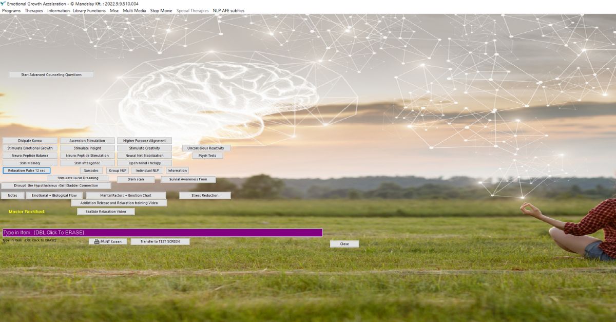 No programa de Programação Neuro-Linguística (NLP – Emotional Growth Stress Reduction) existem funções específicas relacionadas com as redes neurais e neuro-péptidos, focadas no reequilíbrio emocional e bioquímico.