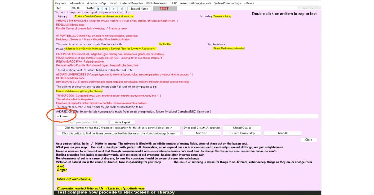 Abre EPR Enhancements → Patient Superconscious Reduction Panel, escreve apenas a palavra “unknown” no campo de doença e clica em Start Superconscious Link.