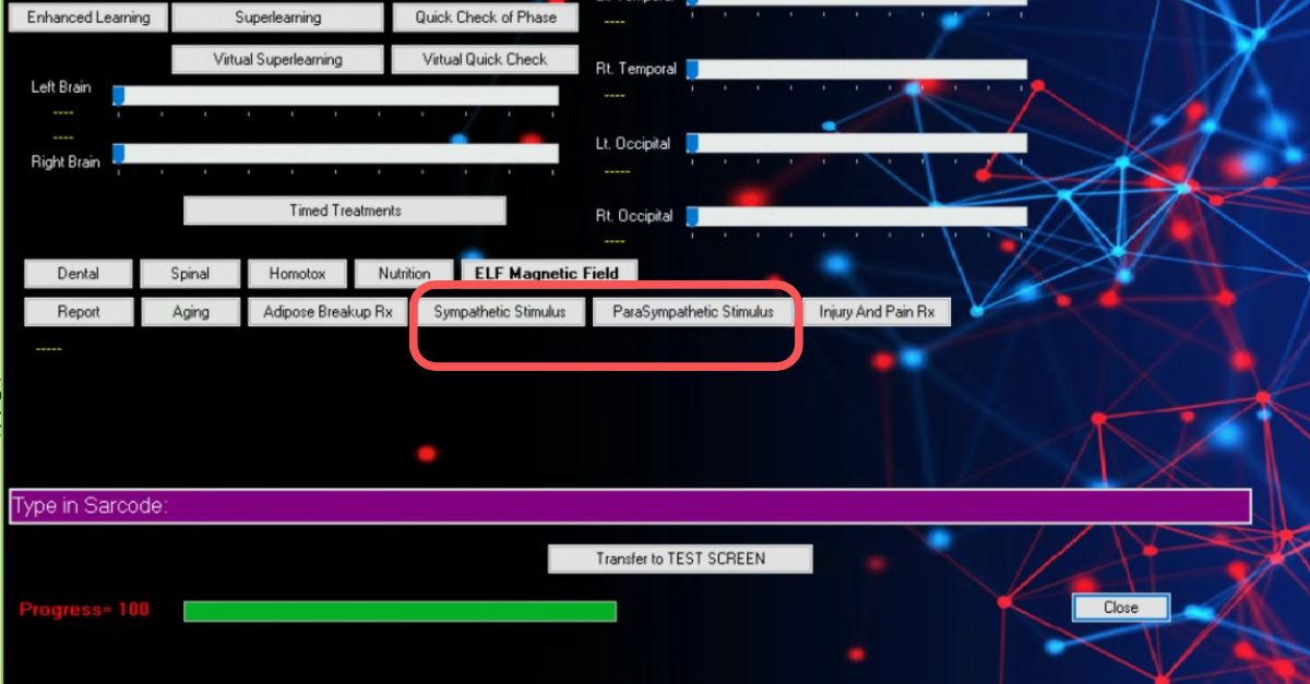 • No Timed Therapy, quando escolhes estas opções, o sistema envia frequências específicas para regular a hiper ou hipoatividade de cada ramo.
